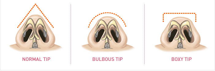 大部分的*人的鼻子是“蒜头鼻”,鼻尖圆扁,形成蒜头鼻主要有两个原因,构成鼻尖的鼻软骨扁大,并分别“瘫”在左右两侧;覆盖鼻尖的皮肤过厚,大部分东洋人的鼻尖特点是鼻尖特点是鼻尖皮肤比较厚,而形成鼻翼的软骨又较小。