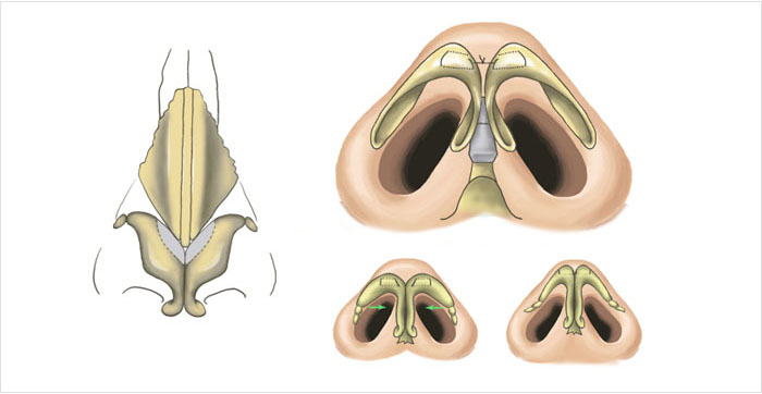 将“瘫”在左右两侧的软骨经过打磨后缝合在一起,这种方法叫做软骨雕塑术,如果鼻尖脂肪较厚,那么去除位于软骨上方的脂肪并做一些出来使鼻尖变薄,让鼻子产生微翘的感觉,必要时还可以利用鼻中隔软骨或耳软骨等自体软骨将鼻子立体化来打造时尚感。