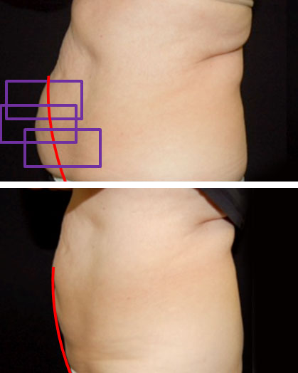 病理研究:前和4个月后由超音波图清楚表现明显减少脂肪层,平均减少22.4%