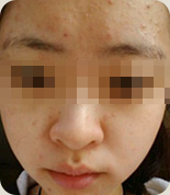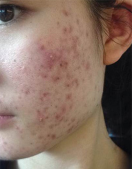 • 痤疮深红,影响整个面色,还没有出脓疱的状态。